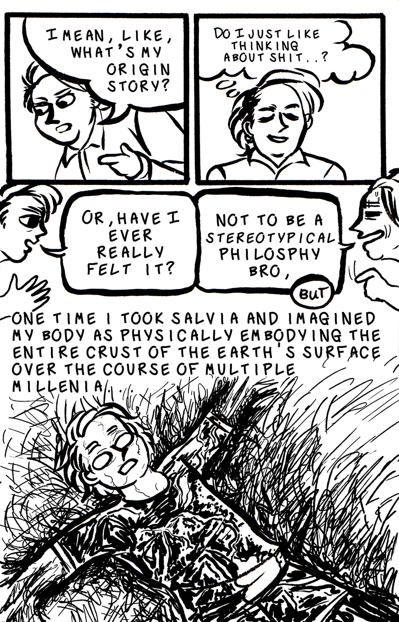 4dtime.space: Origin Story Zine is the introduction to my longer webcomic 4dtime.space: Comics and the Fourth Dimension. In this comic, you'll see my relationship with the concept of time evolve over my childhood and adolescence, starting with my early obsession with Legend of Zelda, to my teenage experimentations with drugs, and some mind-bending dreams that I've had that inspired the articulation of my own personal philosophy of time. Consider this accordion comic to not only be a teaser for my website, but as a micro-block universe in and of itself. Made in part for my thesis for the MAVCS program at the School of the Art Institute of Chicago.